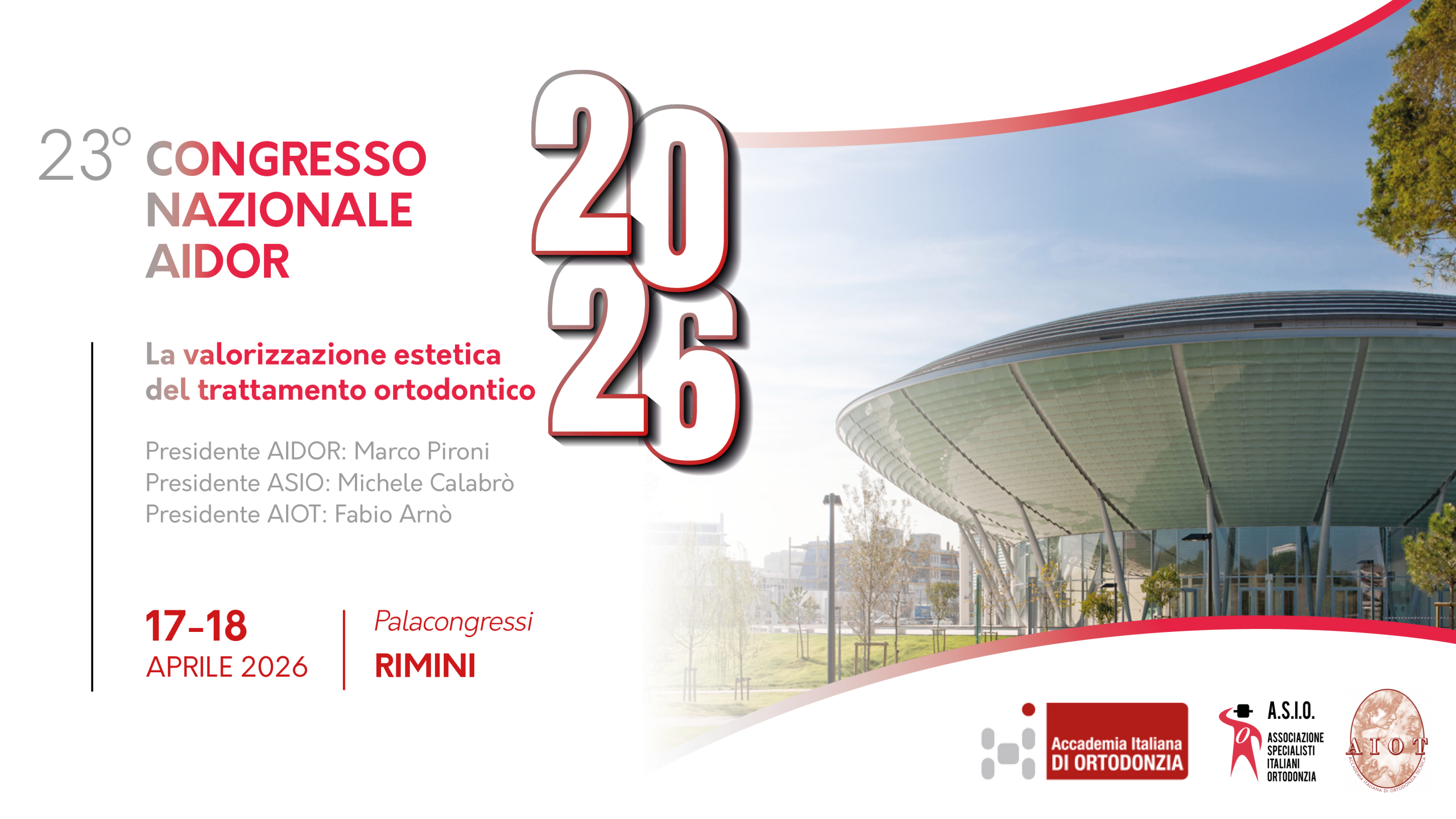 È con sincera soddisfazione che vi presento il programma preliminare del 23° Congresso Nazionale dell’Accademia Italiana di Ortodonzia, che si svolgerà al Palacongressi di Rimini il 17 e 18 Aprile 2026, e che avrà per titolo ‘’La valorizzazione estetica del trattamento ortodontico’’.